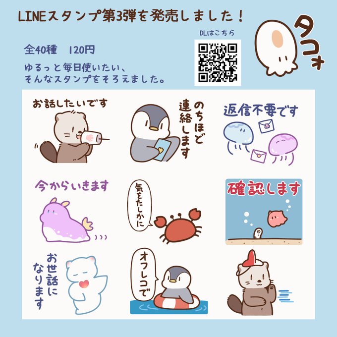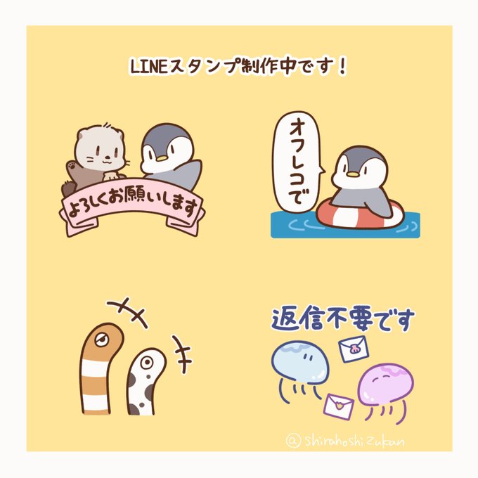 【お知らせ】 #しらほしずかん LINEスタンプ第3弾を発売しました!! ゆるっとかわいく使いやすい40種をそろえました🐧🦦 ご購入はこちらから↓ store.line.me/stickershop/pr…