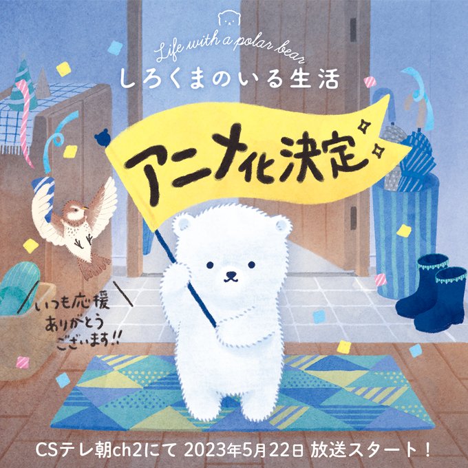 / #しろくまのいる生活 TVアニメ化決定🎉 \ なんとアニメ化決定です…! 皆様の応援のおかげです、本当にありがとうございます! 詳細は続報をお楽しみに✨ 🐻❄️CAST🐻 ナレーション: #神尾晋一郎 しろくま: #小林大紀 CSテレ朝ch2 5/22(月)放送開始!【全10話】