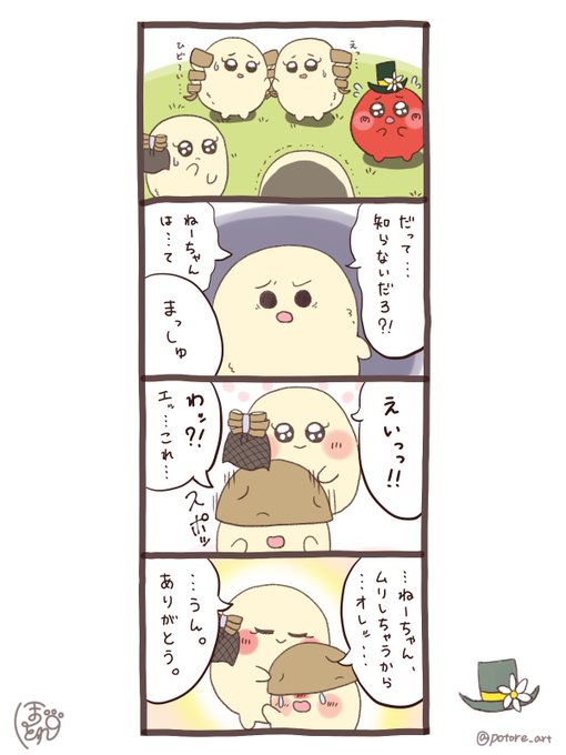 たいせつなぼうし🎩⑤ . . . #illustration #イラスト #ゆるいイラスト #トマト #じゃがいも #ぼうし #漫画が読めるハッシュタグ #一日一絵 #イラスト好きな人と繋がりたい