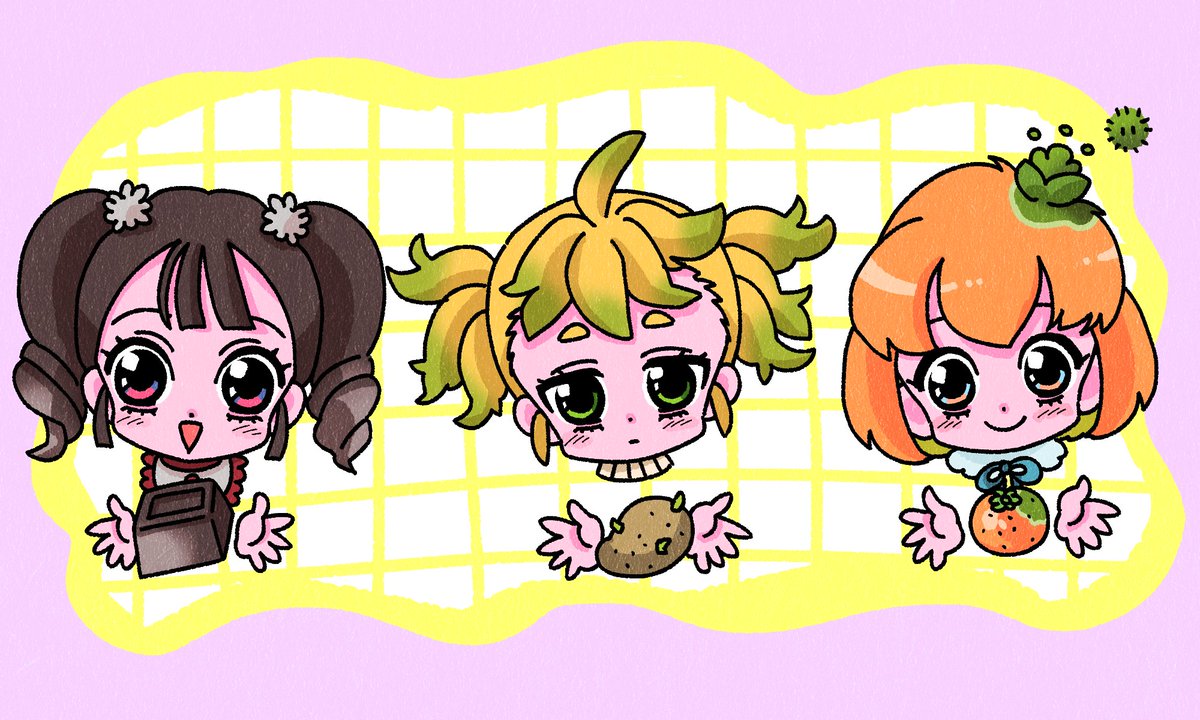 #じゃがめちゃん #だいすきじゃがめちゃん nikkiさん(@nikipopo)の、じゃがめちゃん達を描かせて頂きましたっ! とても可愛い三人・・・✨🥔🍊🍫✨ (じゃがめちゃんの髪がバナナみたいになっちゃって難しい😂) これからもnikkiさんの素敵な作品を楽しみにしています✨