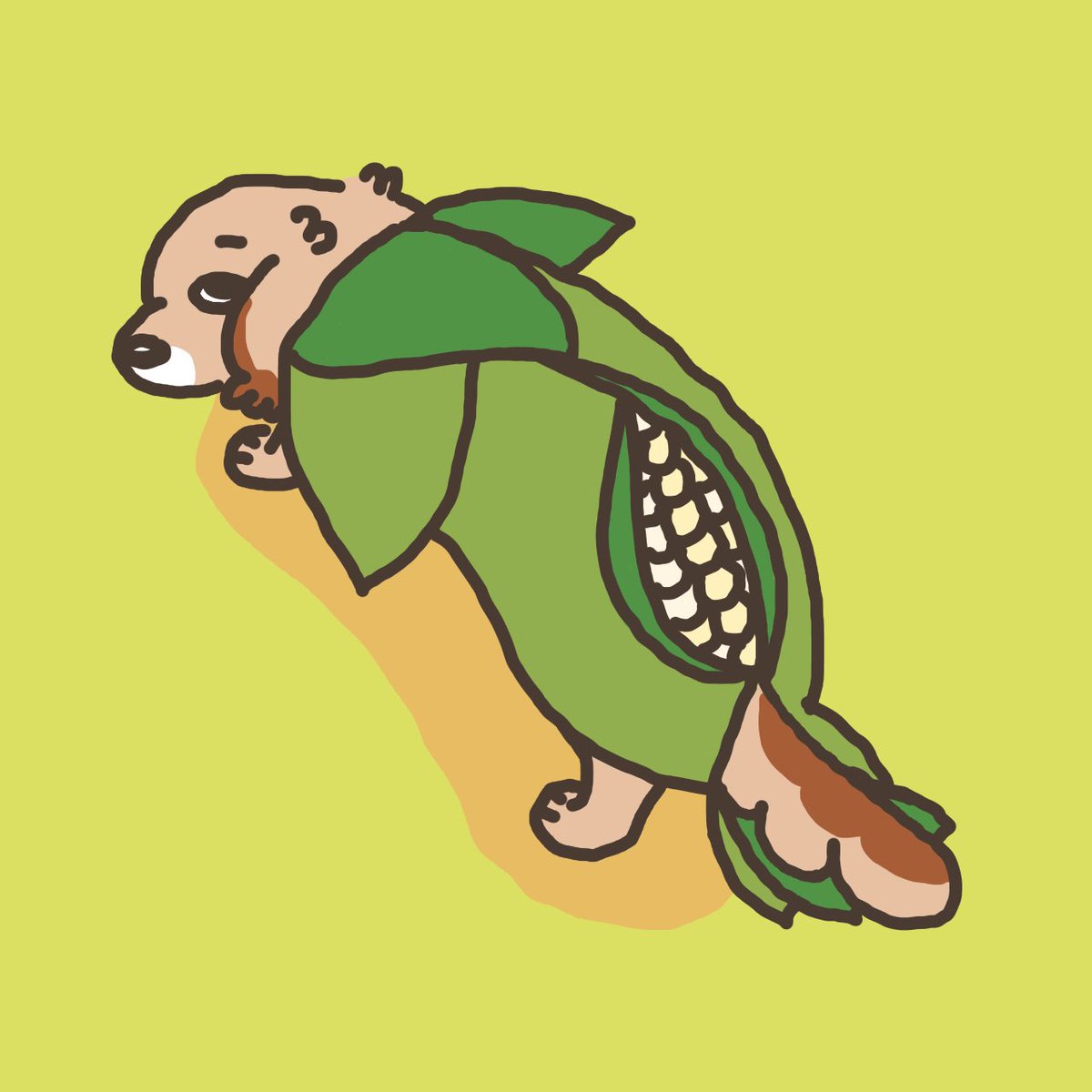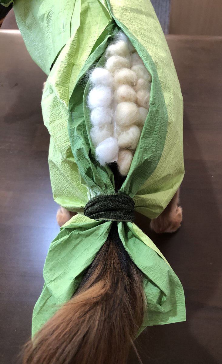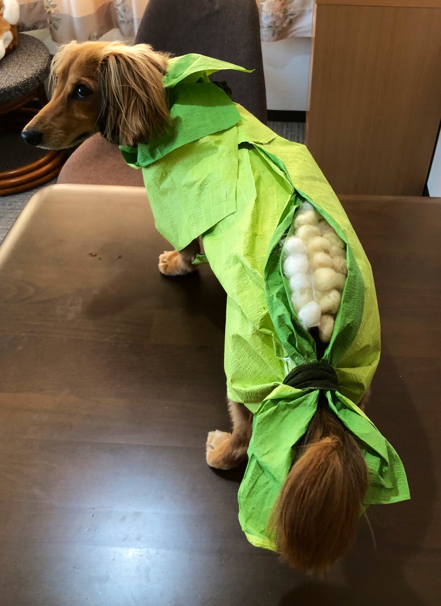 おしっぽ見られてる… トウキビのヒゲ… #ミニチュアダックスフンド #イラスト #コスプレPH #トウキビの精 #なんか夜に文房具屋行ったと思ったら #ピーターパンみたいだね #じゃないよ #札幌大通り公園のとうきびワゴンのオファー来るかな