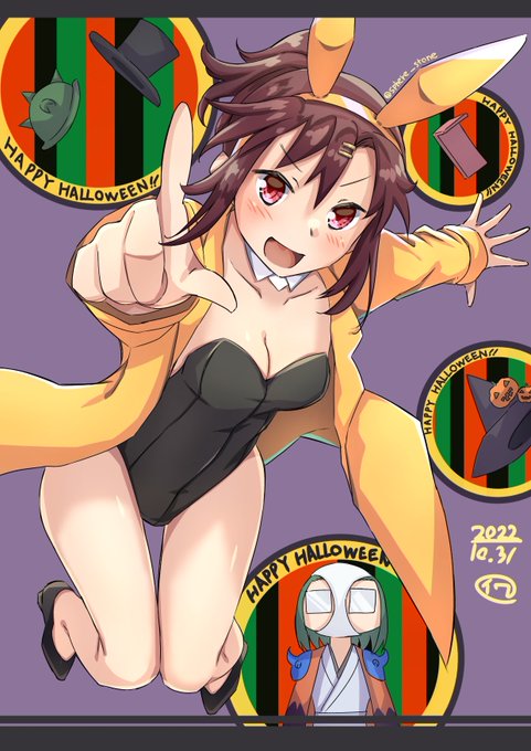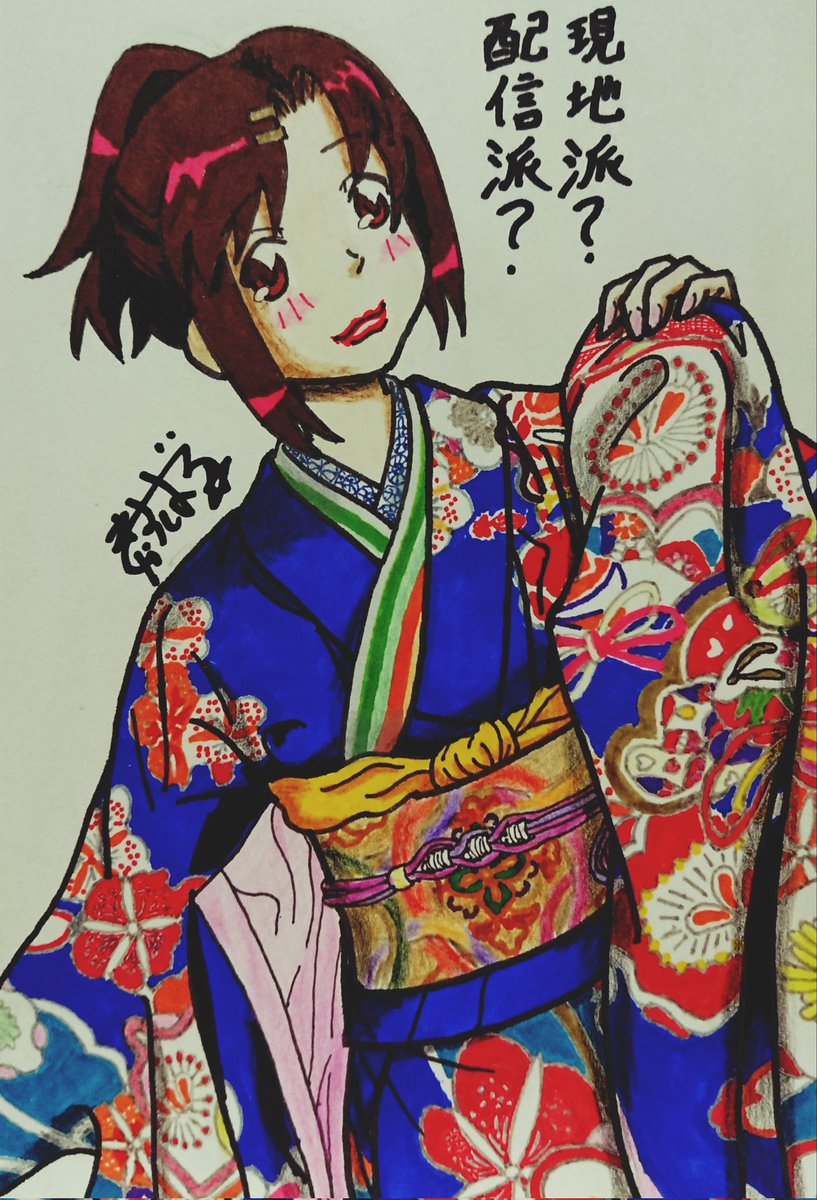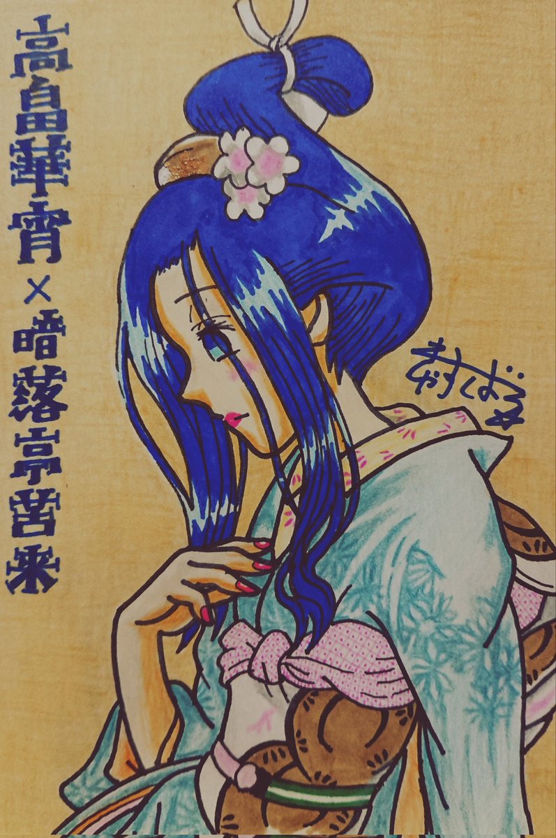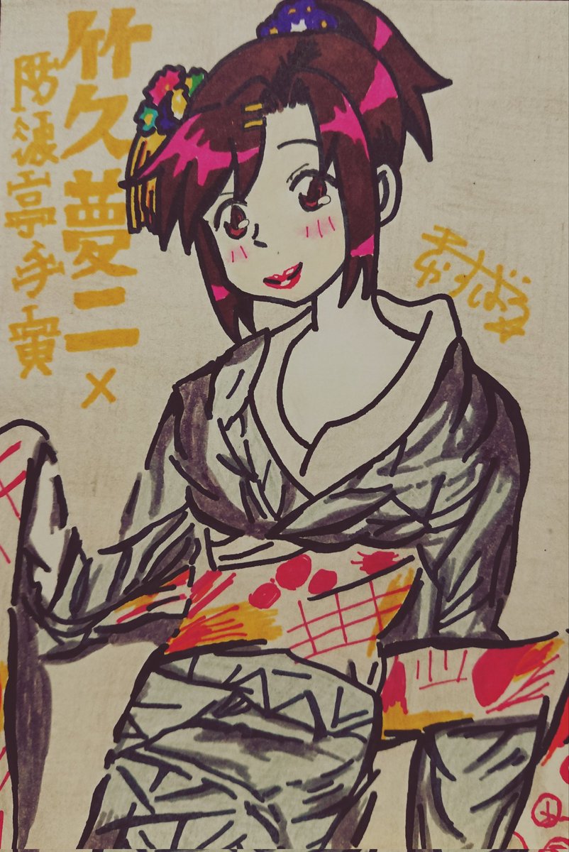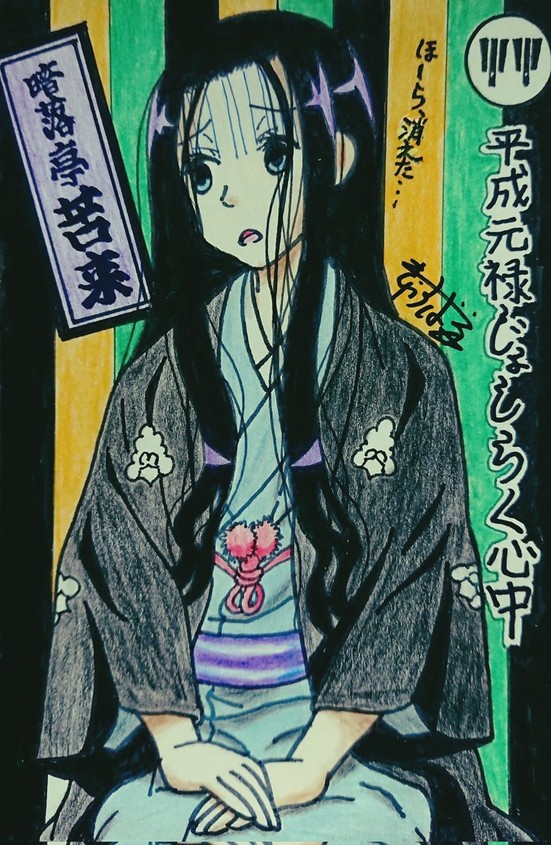 #じょしらく 特集!『昭和元禄落語心中』パロで暗落亭苦来さん、旧・中の人ネタ『えれぴょん』ジャケ・小野恵令奈さんのパロで波浪浮亭木胡桃さん、旧・中の人ネタ『化物語』千石撫子さんのパロで空琉美遊亭丸京さん、キャバドレスの防波亭手寅さん。 #久米田康治ファンアート