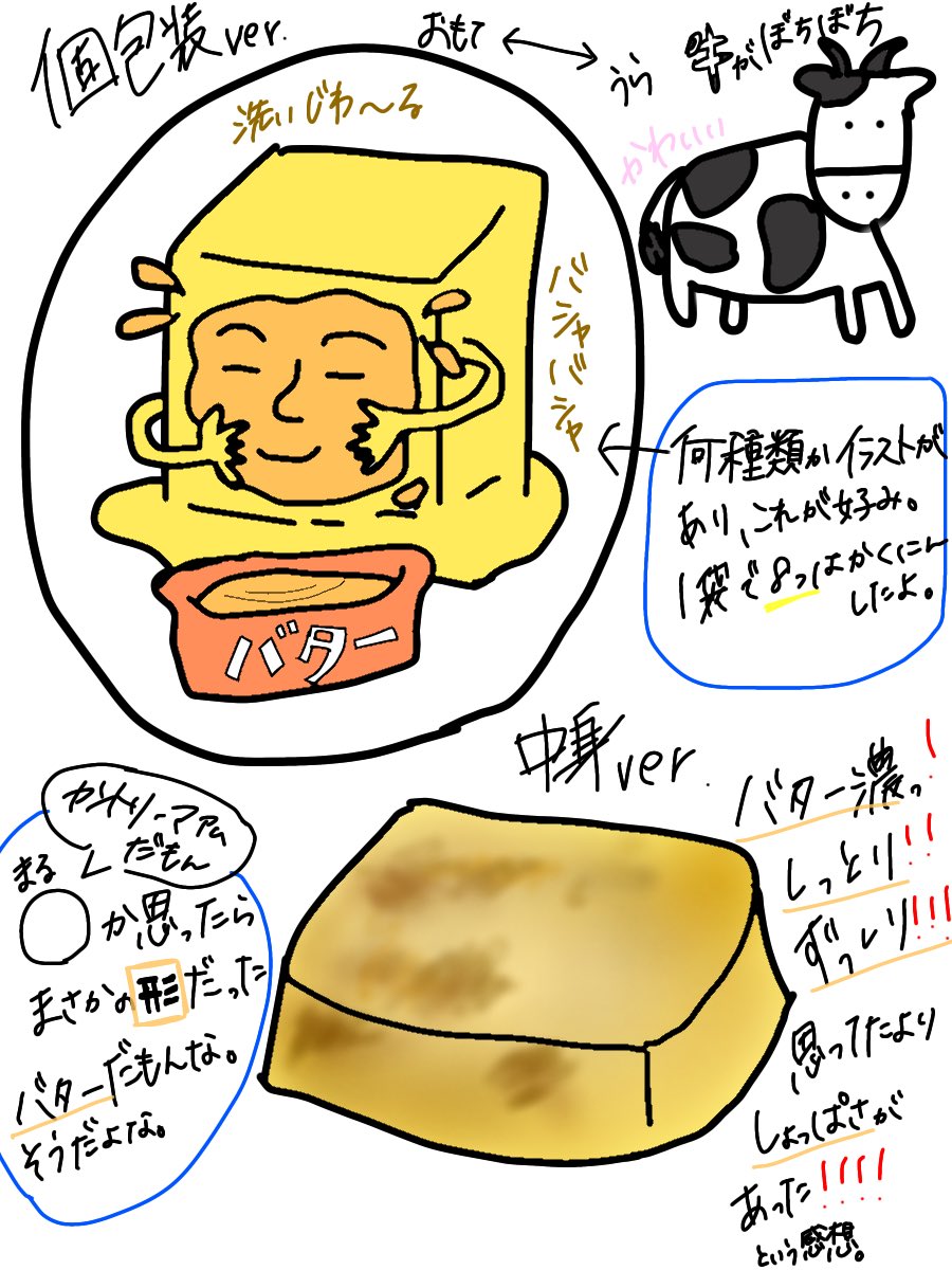 肩の力ぬいてこう♪ ああ。じわるバター美味ー🥹💕 じわるバターの袋裏には1〜6頭の牛がいて、順番に並べひっくり返すと...バターさんの朝の様子が描かれているよ!(ドヤっ!) #イラスト #イラスト好きな人と繋がりたい #きょうのもとじ #じわるバター #チョコまみれ instagram.com/p/Ch2LldwBrth/…