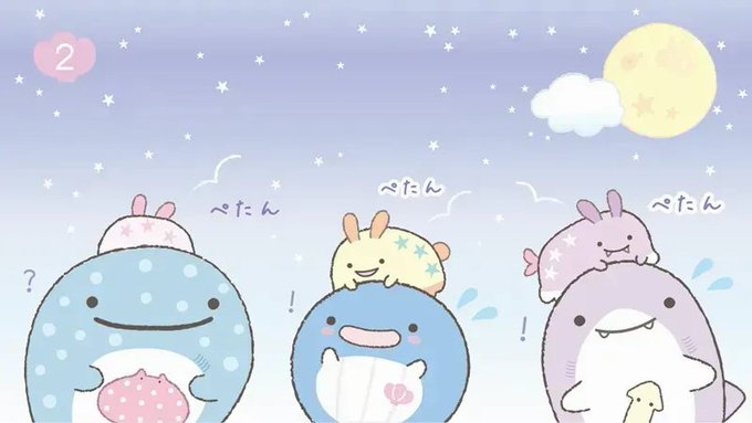 #じんべえさんとうみうさぎ ストーリー③🌕✨ それは、月と海を行き来する「うみうさぎ」でした。満月の夜にはたくさんおりてきて、大好きな海で遊ぶようです。 san-x.co.jp/blog/goods/202…