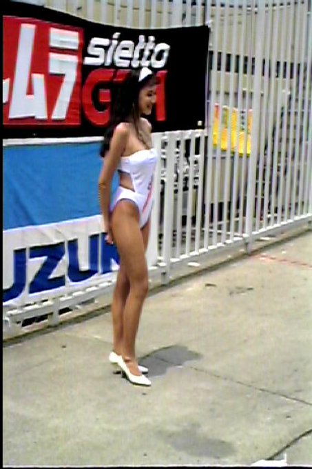 寄贈したキヤノンのスチルビデオカメラQ-PICからレスキューされた写真、89年の鈴鹿8耐か日本GPあたりみたいですね。バブリー感がプンプンです。84年のポスターが写っている写真は、テレビの画面を撮影したみたいな感じでした。 #絶滅メディア博物館 #スチルビデオカメラ #すがやみつる twitter.com/TakuyaKawai/st…