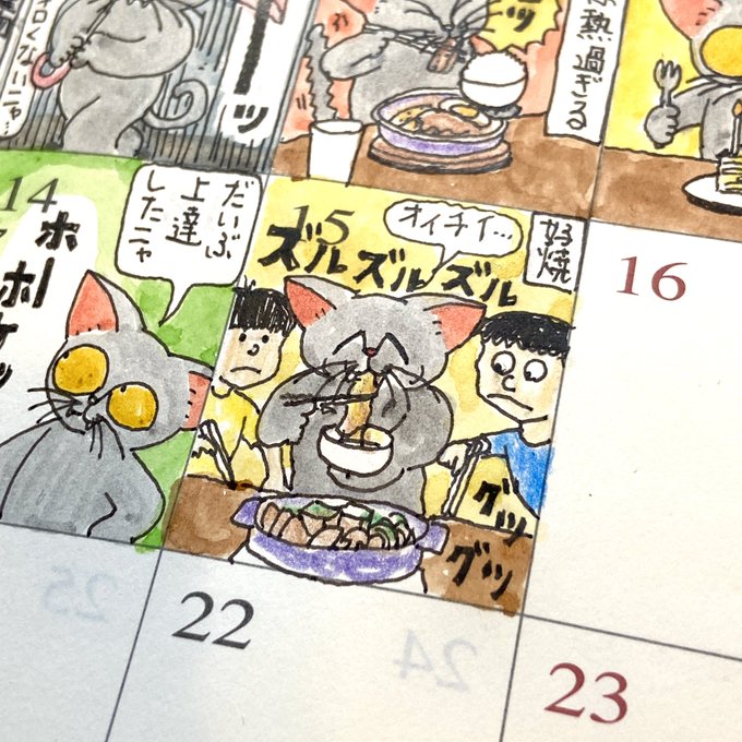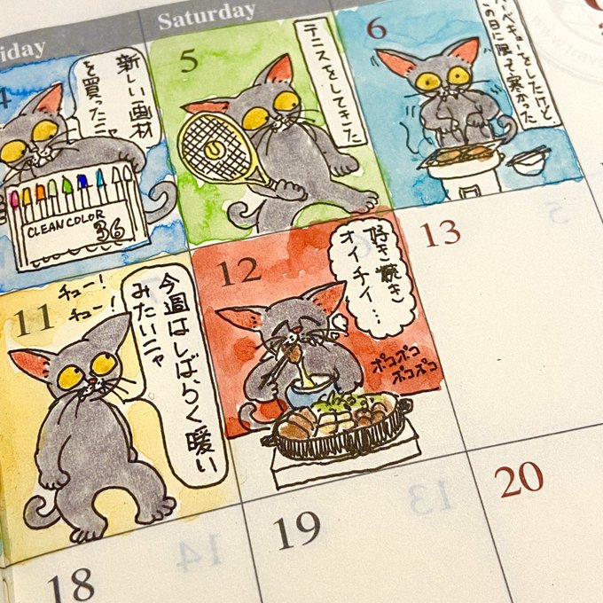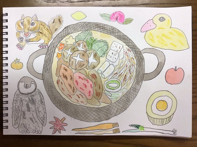 兄一家の出国前のすき焼き。 #すき焼き #水彩画 #手帳 #トラベラーズノート #猫 #スケッチジャーナル #マンスリージャーナル #絵 #イラスト #イラスト好きな人と繋がりたい #絵描きさんと繋がりたい