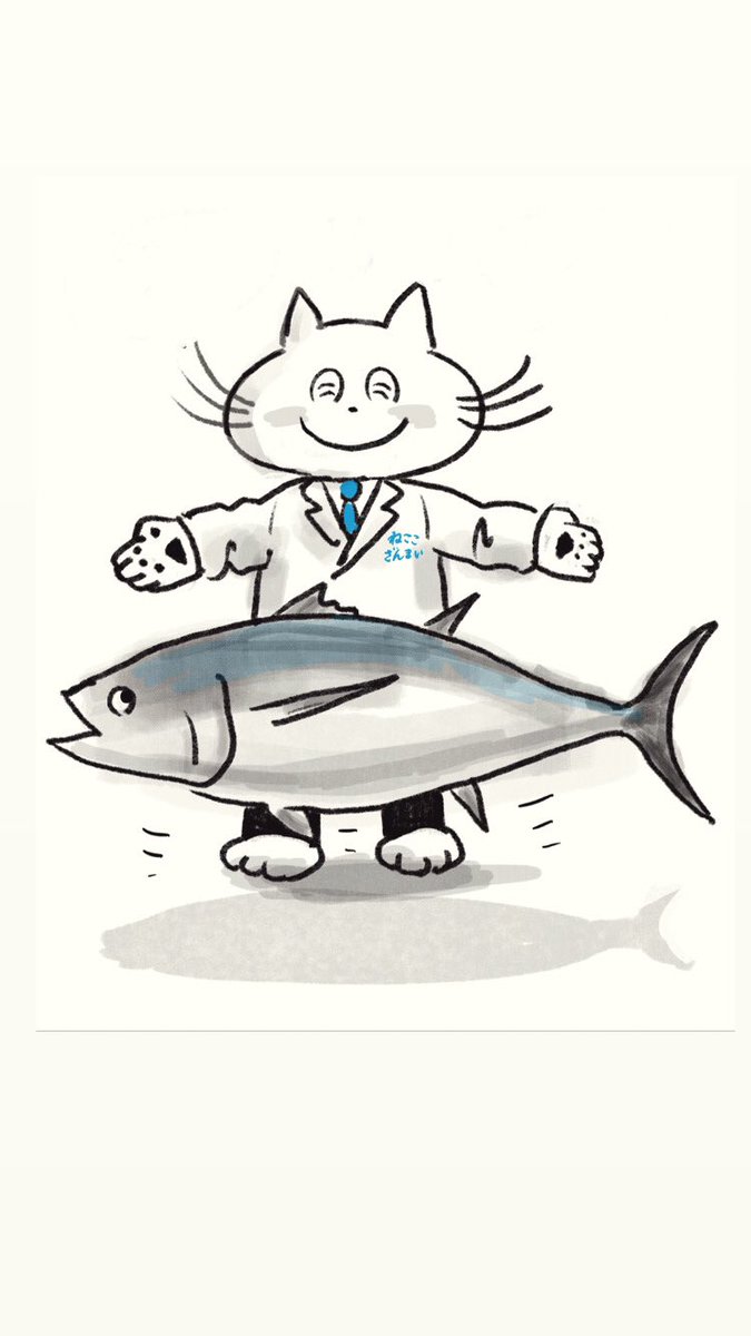 ねこのきぐるみ着たら しゃちょーになっちゃった #イラスト #ゆるいイラスト #イラスト好きと繋がりたい #絵描きさんと繋がりたい #すしざんまい #猫 #あくまで可愛い路線で押し通すとんさん