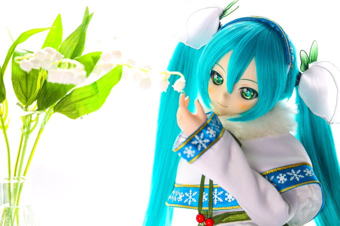 今日はすずらんの日らしいのでポックルちゃんとお花の組み合わせ この雪ミク衣装Twinkleちゃんと同じくらい好き #すずらんの日 #ドルフィードリーム #うちのこかわいい #ドールオーナーさんと繋がりたい