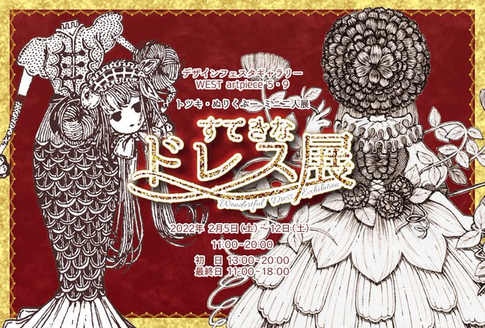 👗【すてきなドレス展】👗 搬入、完了イタシマシタ。 本日2/5から2/12までです。 お近くにお立ち寄りの際は是非ご覧下さいマセ。 #すてきなドレス展 #イラスト #原宿 #展示会 #デザインフェスタギャラリー #トツキ #ぬりくぶー designfestagallery.com/form_jp/galler…