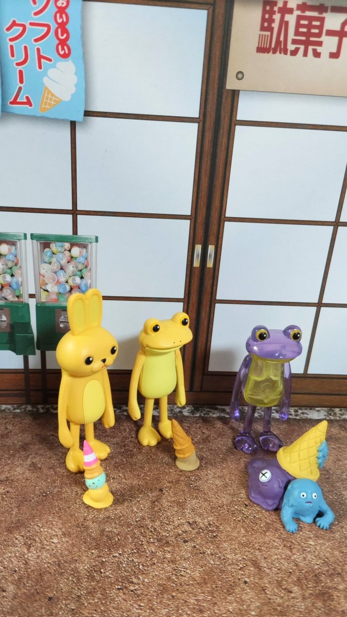 #おもちゃ撮影会 07/03《怖》 ソフトクリームを落としすぎて もったいないオバケになっちゃいました(ŏ﹏ŏ;)👻〜 #すべてがおしまいになったカエル #すべてがおしまいになったうさぎ #クッキングゾンビーズ