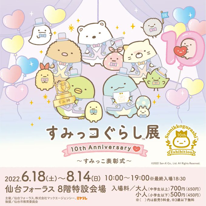 🎈うれしいお知らせ🎈 すみっこ表彰式 開催会場 第1弾 はっぴょう~⭐️ 『すみっコぐらし展 10th Anniversary ~すみっこ表彰式~』を「東京」「宮城」「大阪」会場にて開催します✨ みなさん、お楽しみに🏅🏆お待ちしてます! 詳しくは▷san-x.co.jp/blog/sumikko/2… #すみっコぐらし展