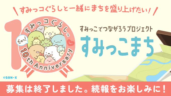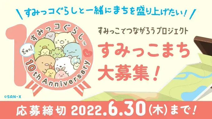 🌈 #すみっこまちコラボ 募集中🌈 「すみっコぐらしと一緒にまちを盛り上げたい!」そんな全国の”すみっこまち”を募集中です! 締め切りは6/30まで 応募はこちらから▼ sumikkogurashi-10th-machicollabo.jp #すみっコぐらし10周年