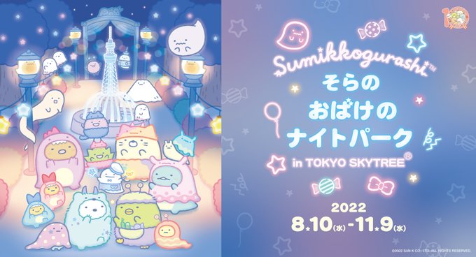 ✨イベントのお知らせ✨ 8/10(水)より10周年記念イベント すみっコぐらし『そらのおばけのナイトパーク in TOKYO SKYTREE®』の開催が決定! 展示やカフェ、グッズ販売などもりだくさん✨ 詳細はTwitter、特設サイトで告知していくのでお楽しみに♪ sumikkogurashi-10th-project.jp/skytreeevent/ #すみっコぐらし10周年