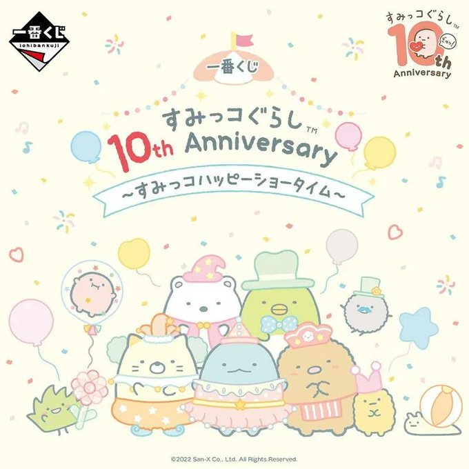 『一番くじ すみっコぐらし 10th Anniversary ~すみっコハッピーショータイム~』が、いよいよ9月10日(土)に登場します✨ 詳しくはこちら▷san-x.co.jp/blog/toretate/… #すみっコ情報