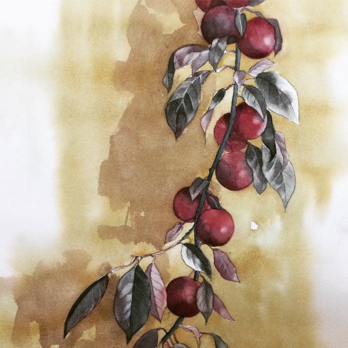 店先のすもも。 2022/8/21 #すもも #plums #果実 #fruits #蓑島えみ #emiminoshima #minoshimaemi #イラスト #イラストレーター #illustration #drawing #painting #絵