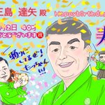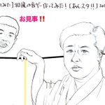 前回のなんぜう殿に続いて今度は上様! 写楽寄りにすると似なかったので写実寄り。ギリギリまでパンティかたじけないにするか悩んで、背景にほんのり匂わせました。いみじー! #すゑひろがりず #三島達矢 #似顔絵 #絵描きさんと繋がりたい twitter.com/kawasemint/s…