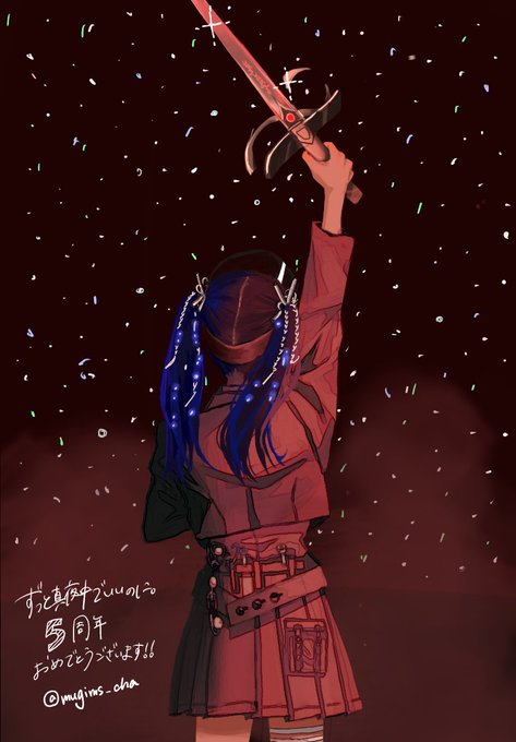 5周年これ描こうと思って修正したんだけど色塗る時間なかったのでとりあえずお祝い前イラスト!!!! 今度ちゃんと塗って載せる 周年の絵はもっと可愛いよ!! #ずとまよファンアート #ずっと真夜中でいいのに