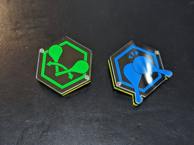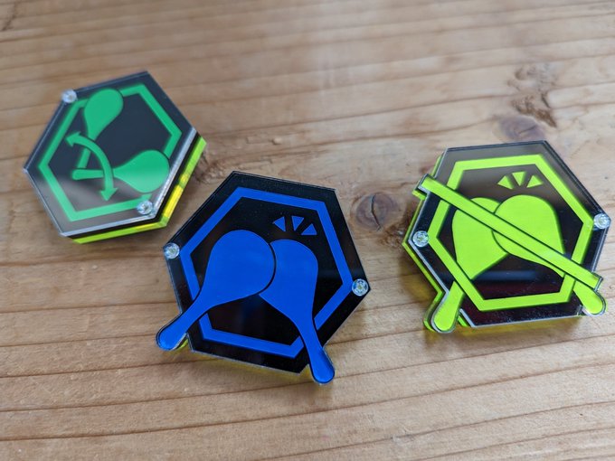 この前のライブ配信見て絶対に作ろうと思ってたしゃもじ使用指示マークのアクリルピンバッジできた! NO CLAPは色が気に食わなかったのでそのうち作り直す予定… #ずっと真夜中でいいのに #ずとまよファンアート #ずとまよ