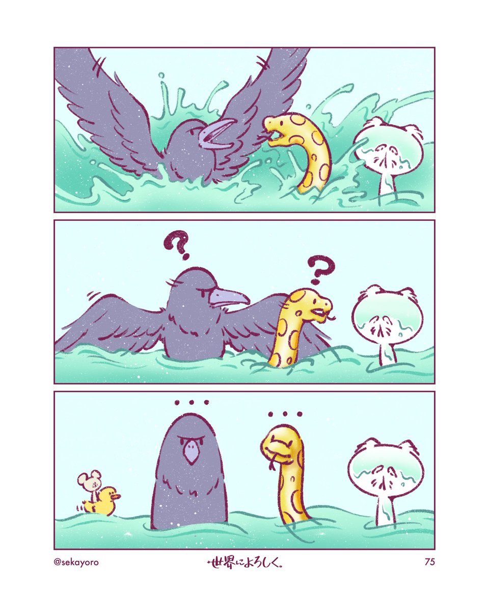 セリフ無しで描く、猫みたいな生物「通称:ニュー」と少女(少年)「オト」が世界を旅する創作漫画です🌟 少しでも世界がやさしい気持ちでありますように😌 #せかよろ #創作漫画 #漫画が読めるハッシュタグ