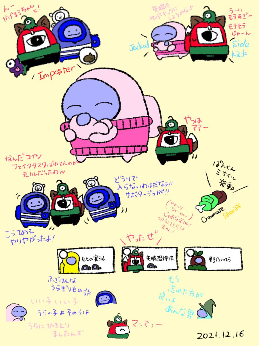 Imposterからsidekickになって、ママも吊られて最後すぐ後ろからぬーん乗ったのも見られて絶望してたけど、ミサイル陣営発動したり、最後まで諦めずに戦って勝ったの本当に凄すぎた🥺やつはママとの勝利おめでとうございます👏#せんたんアート #やつはーと #影絵と書いてファンアートと読ませたい