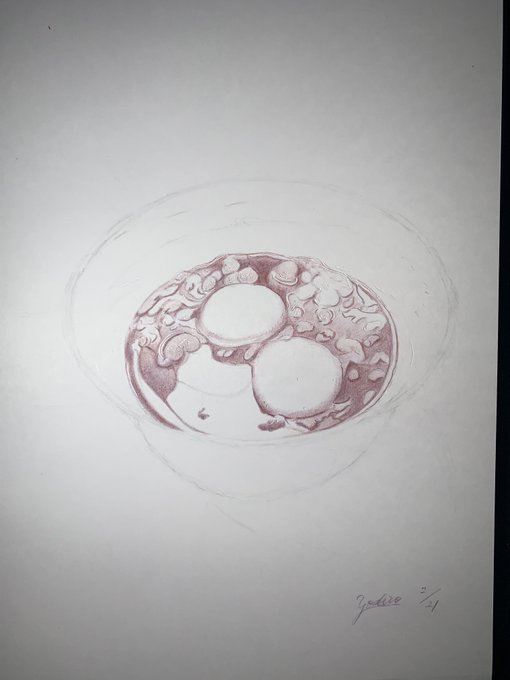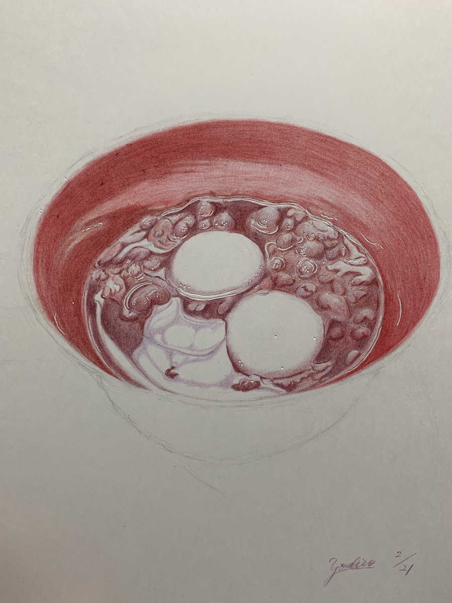 色鉛筆で描いた、 「ぜんざい」✨🫘✨ ぼんぼん先生の 色鉛筆画教室で描いたお題🫘 プチ制作過程を😌 #色鉛筆画 #色鉛筆 #ぜんざい #colorpencil #colorpencildrawing