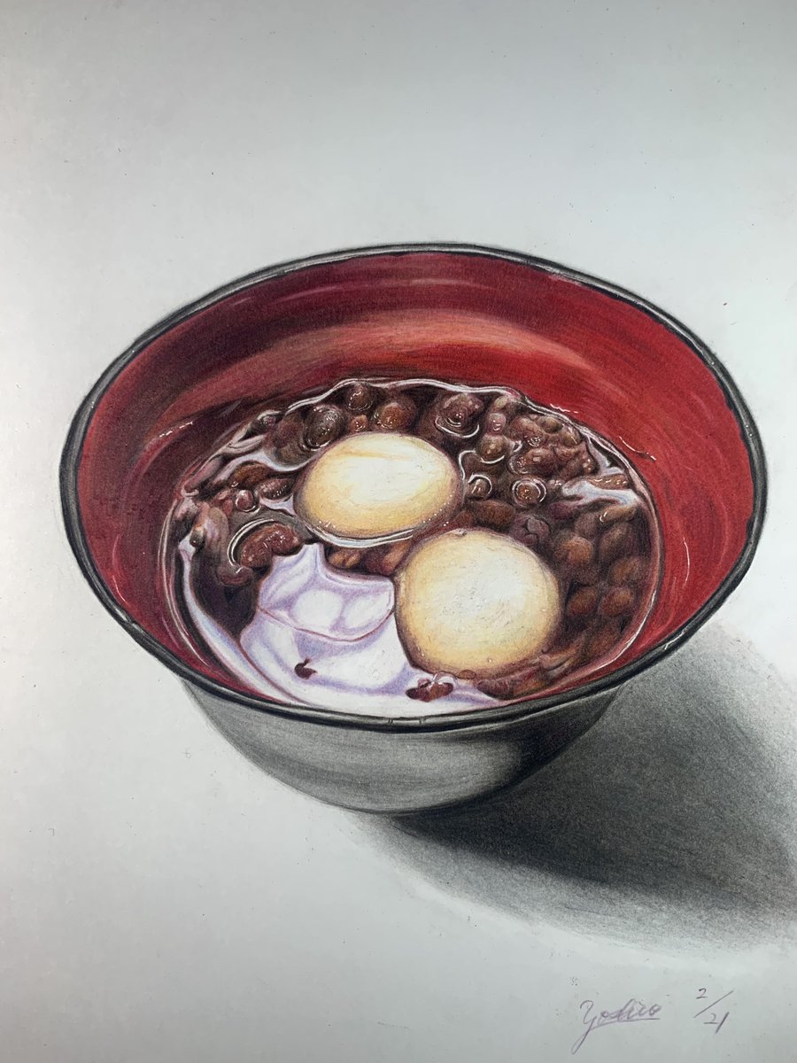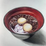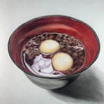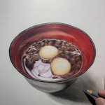 色鉛筆で描いた「ぜんざい」🫘 ぼんぼん先生の 色鉛筆画教室のお題です🧑🏻🏫✨ ((꜆꜄ ˙꒳˙)꜆꜄꜆モチモチモチモチモチモチモチモチ #色鉛筆画 #色鉛筆 #ぜんざい #colorpencil #colorpencildrawing