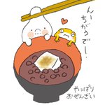 【今日のマシュマロのつぶやき】 休けいしよか 今日は おぜんざい #マシュマロおじさん #相棒チョコ #キャラクター #かわいい絵本 #みんなで楽しむtwitter展覧会 #イラスト好きな人と繋がりたい #ぜんざい