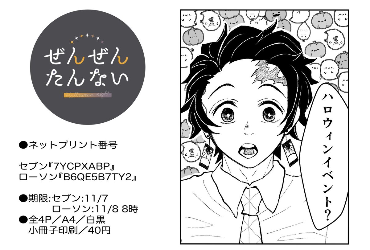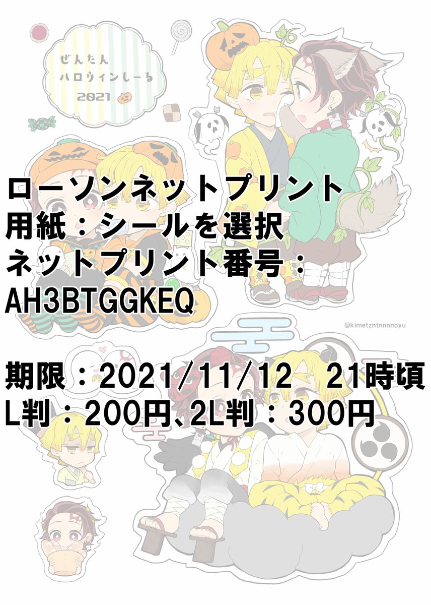 🎃ハロウィ ン過ぎて今更ですが 当日出す予定だった善炭ハロウィンシールです ローソ ンさんのネットプリントにて用紙:シールを選択して印刷して下さい プリント番号:AH3BTGGKEQ 期限:2021/11/12 21時頃 L判:200円、2L判:300円です 3枚目にサイズ比較画像を参考にどうぞ #ぜんたんハロウィン