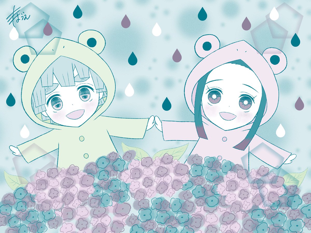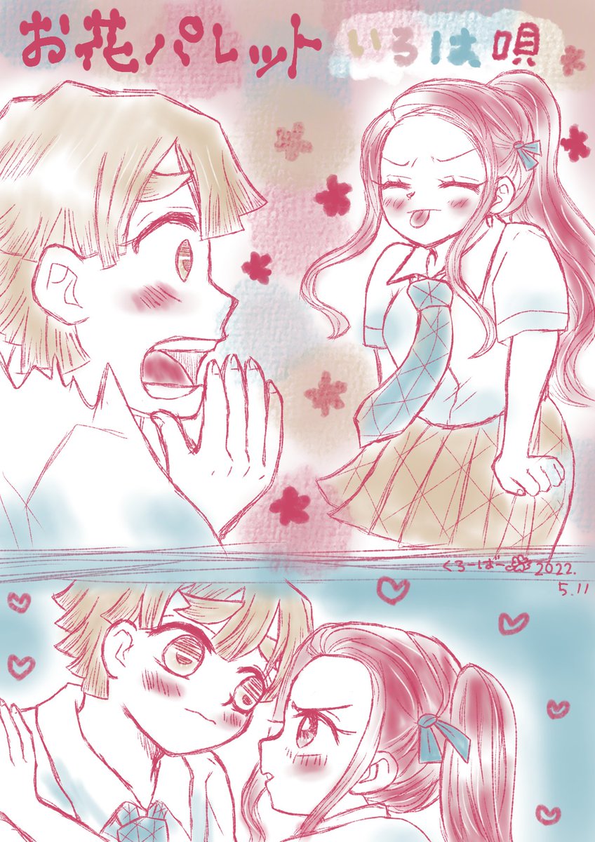 #ぜんねず4色チャレンジ 雲i取山で暮らし始めた時は何も意識せずに手を普通に繋いだりしてたけど(1枚目) 恋仲になってから手を繋がれたらめちゃくちゃ意識しちゃってドキドキしちゃう🎀ちゃんってかわいいなあーっっって瞬間の2.3.4枚目 先月の4色パレット全部使ってみました