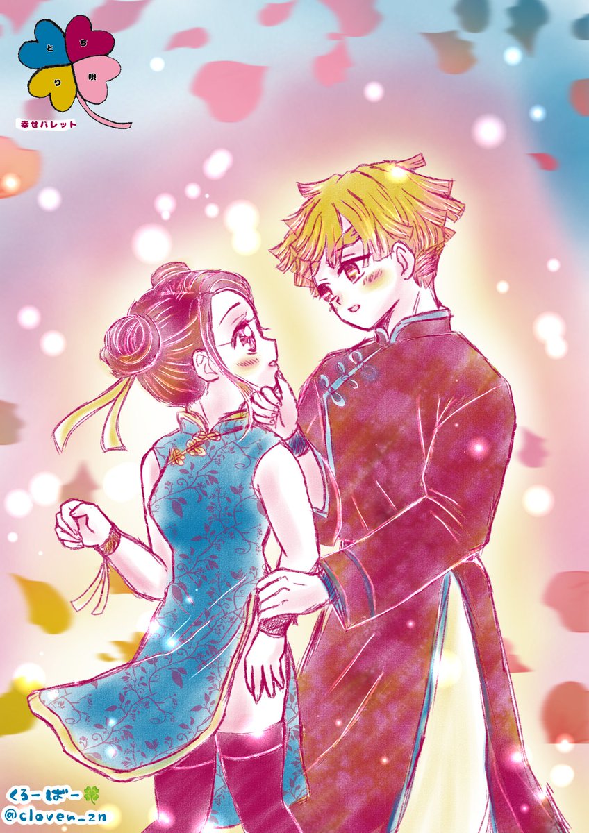 相互さんがチャイナ服を描いてて私も描きたくなっちゃいました💕 #ぜんねず4色チャレンジ タグお借りします🏷 🍀幸せパレット🍀で描きました🎨 ⚡🎀恋の始まり💘 街ですれ違ったその子に一目惚れ💘