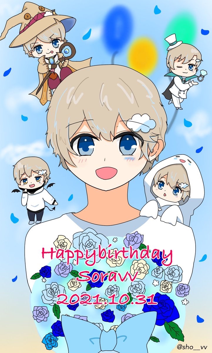 soravv : Happy birthday ¨̮ 女子力がないので、こったお祝いはできないですが…気持ちだけでもちょっとは伝わるといいな👀❕ とにかく愛してます(怖) これからも頑張ってください️️️⛅️ ずっっと応援してます🙌🏻 #そらびび誕生祭2021 #そらびび爆誕 #そらびびくん誕生祭2021 #びびあーと