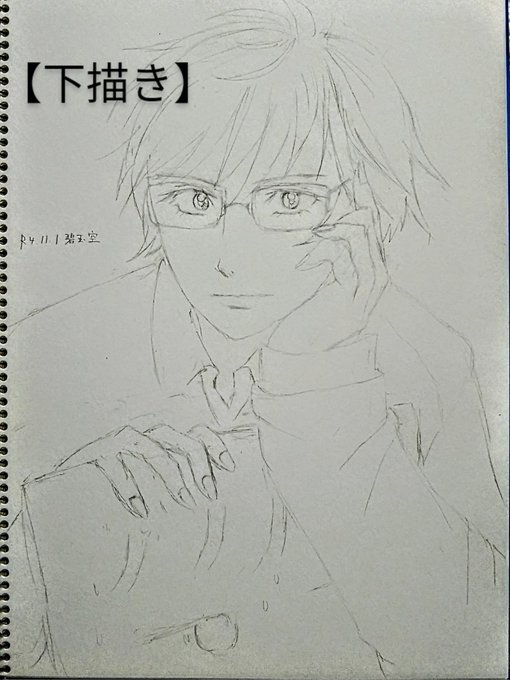 【#そらるさん の誕生日絵が出来るまで】〜2/4枚目〜 《下絵》 シャーペンでシャシャっと実線を描いていく…_φ(・_・ #そらるの絵 #絵の世界 #絵描きさん広場の掲示板 #イラスト #イラスト好きさんと繋がりたい #絵描きさんと繫がりたい #絵描きさんフォロバ100