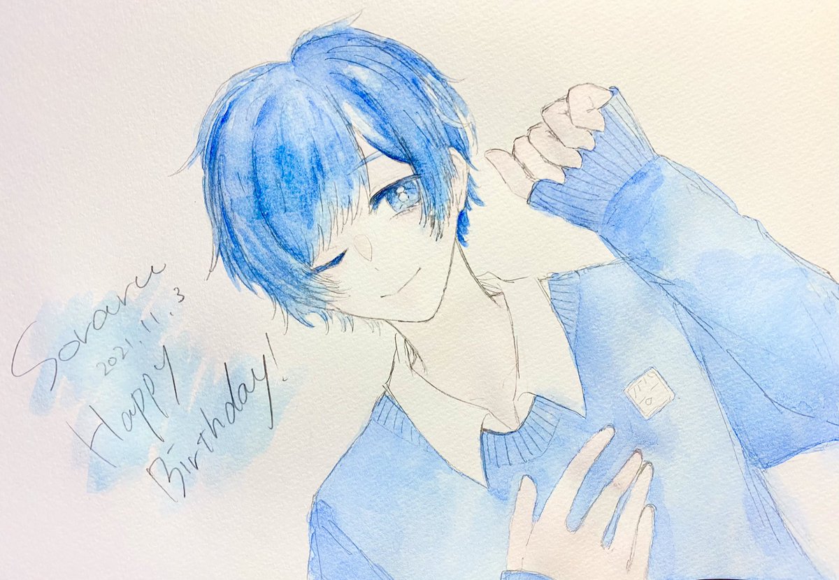 そらるさんお誕生日おめでとうございます!!🎂🎂 これからもずっと大好きです!!🥰🥰 💙2022.11.03💙 #イラスト #水彩画 #そらるの絵 #そらる #そらるさん #そらる誕生祭 #そらるさん誕生祭 #そらる誕生祭2022 #そらるさん誕生祭2022 #そらる爆誕祭 #そらるさんおめでとう #そらる爆誕祭2022