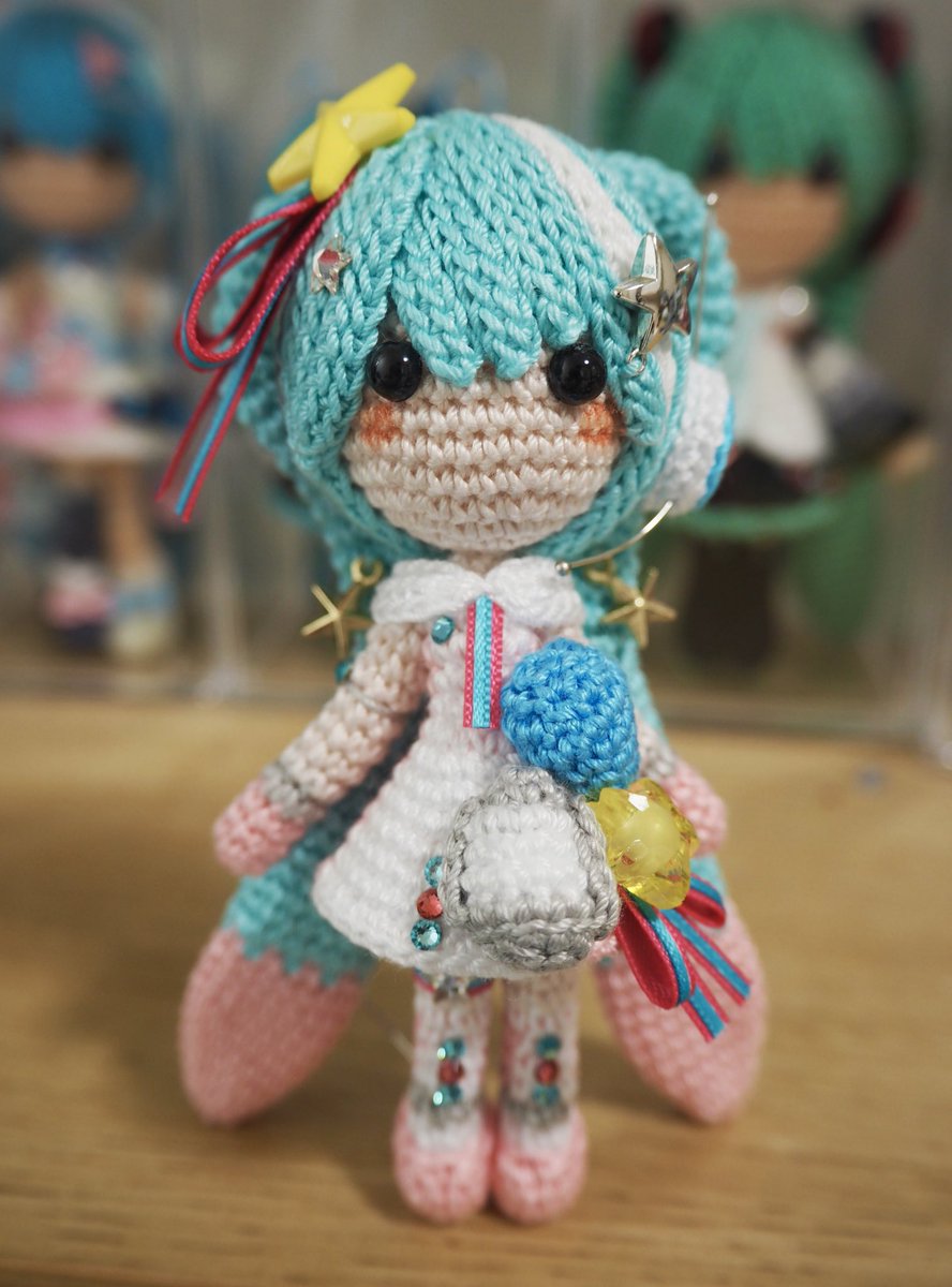 5/20(土)21時頃、BOOTHにて初音ミクさんのあみぐるみ頒布致します。 毛糸で編んだデフォミクさん、V4Xミクさん。 レース糸で編んだNTミクさん、ラッキーオーブさん、テルユアさんになります。 どうぞよろしくお願い致します🙇♂️ sorapichi.booth.pm #初音ミク #そらミク
