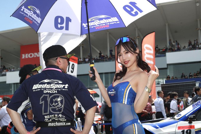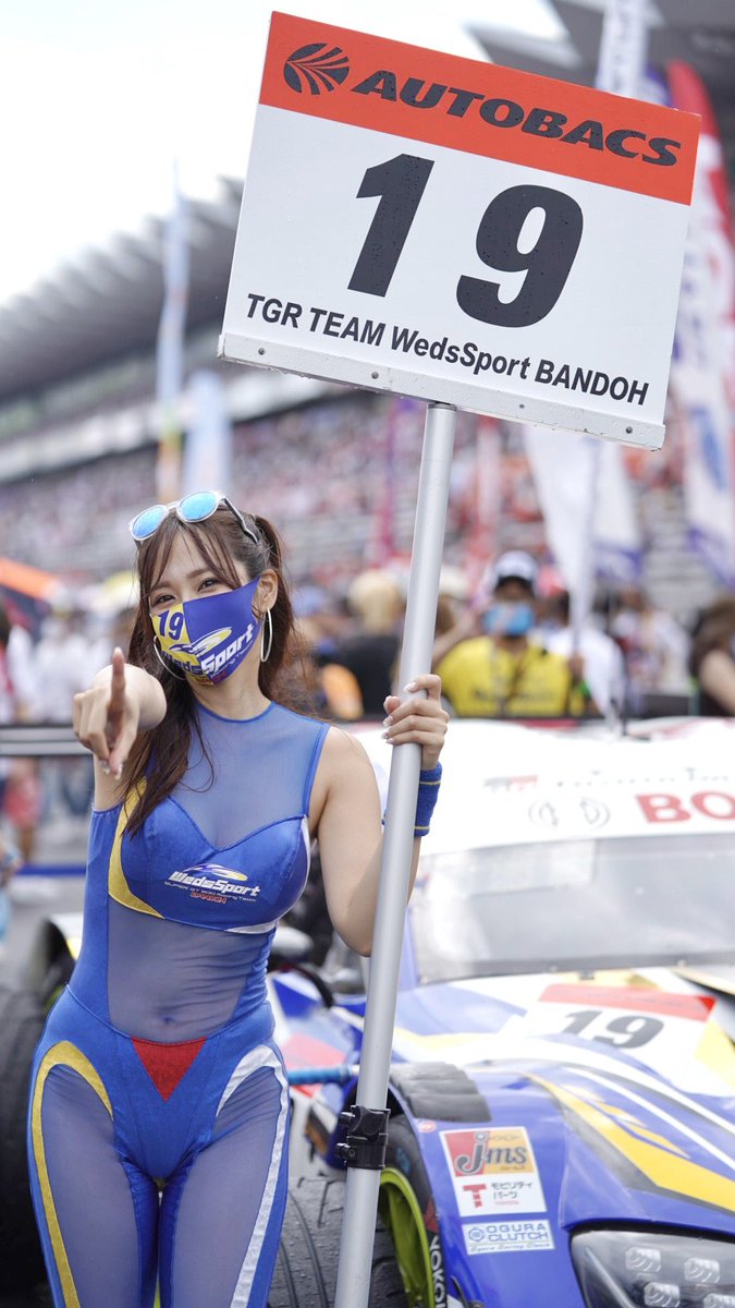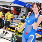今日の決勝レースのグリッドボードはりおが担当です✨ 現在電波が不安定なので暫くツイートできなくなるかもですが😭 私達もスタート進行行ってきます! 19号車沢山応援しようねーっ(๑و•̀ω•́)و #SUPERGT #それいけ坂東ちゃん