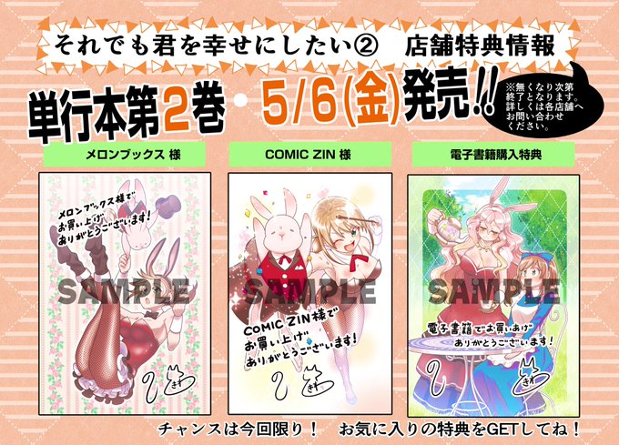#それでも君を幸せにしたい 2巻特典情報です! あさって5月6日(金)発売! 特典は無くなり次第終了となりますので、各店舗にお問い合わせください。 よろしくお願いします!┏○ Amazon様 amazon.co.jp/dp/4253292879/ メロンブックス様 melonbooks.co.jp/detail/detail.… COMIC ZIN様 shop.comiczin.jp/products/detai…