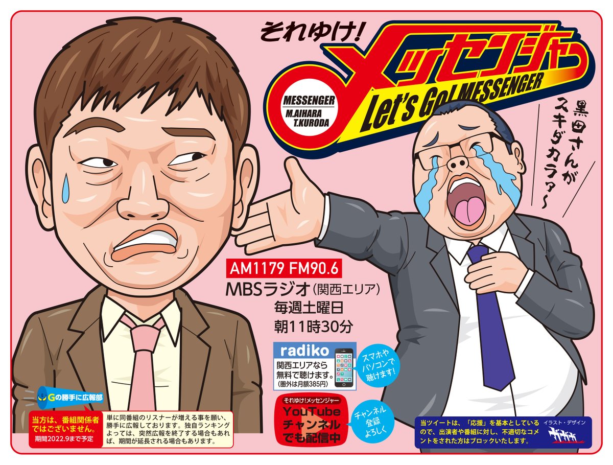 MBSラジオ #それゆけメッセンジャー を勝手に広報しております😀。放送は土曜朝11時30分!YouTube「くろだ煮」では六車さんの転落一代記🤣。「パララジオ」では、パラさん正男ちゃんによる大神さん評😂。併せてお楽しみください。 #絵描きさんと繋がりたい