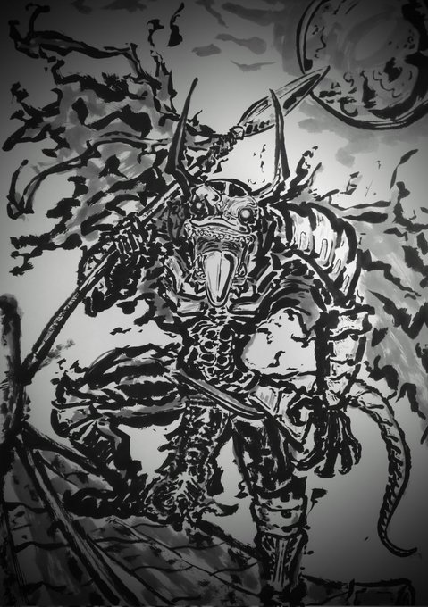 【頂上決戦】 汝、彼方より来る荒ぶる災禍の化身、百鬼夜行の主。あな恐ろしや。然し、此なるは天下無双の剣豪。ワの国統べる水の魔王。 妖異、物ノ怪何するものぞ。 余は呪剣将軍・魔王キザクラ! 疫廟神よ、いざ尋常に!! ……とか、どうよ。 #そろぷ #そろぷファンアート #ソロモンプログラム