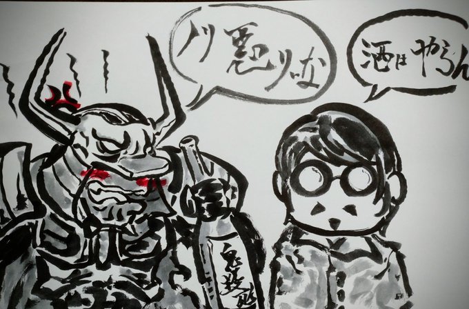 【お気持ちだけ、】 こちらは祝い酒を丁重に断る人間と、断られた鬼の図。酒類を振る舞い、分かち合うという交流のかたち。大事なのは心。 「お気持ちだけ、頂戴します」 私の好きな言葉です。 「俺の酒が飲めないのか」 私の嫌いな言葉です。 #そろぷ #そろぷファンアート #ソロモンプログラム