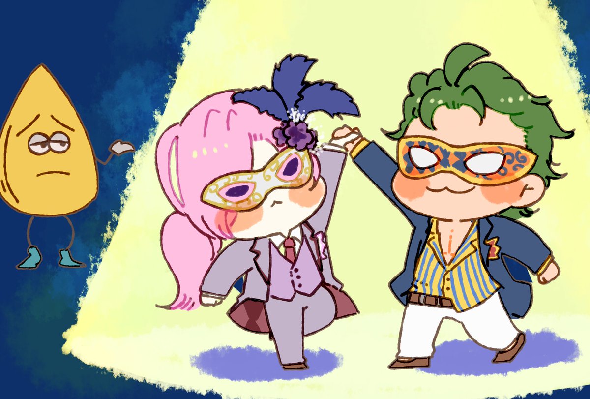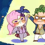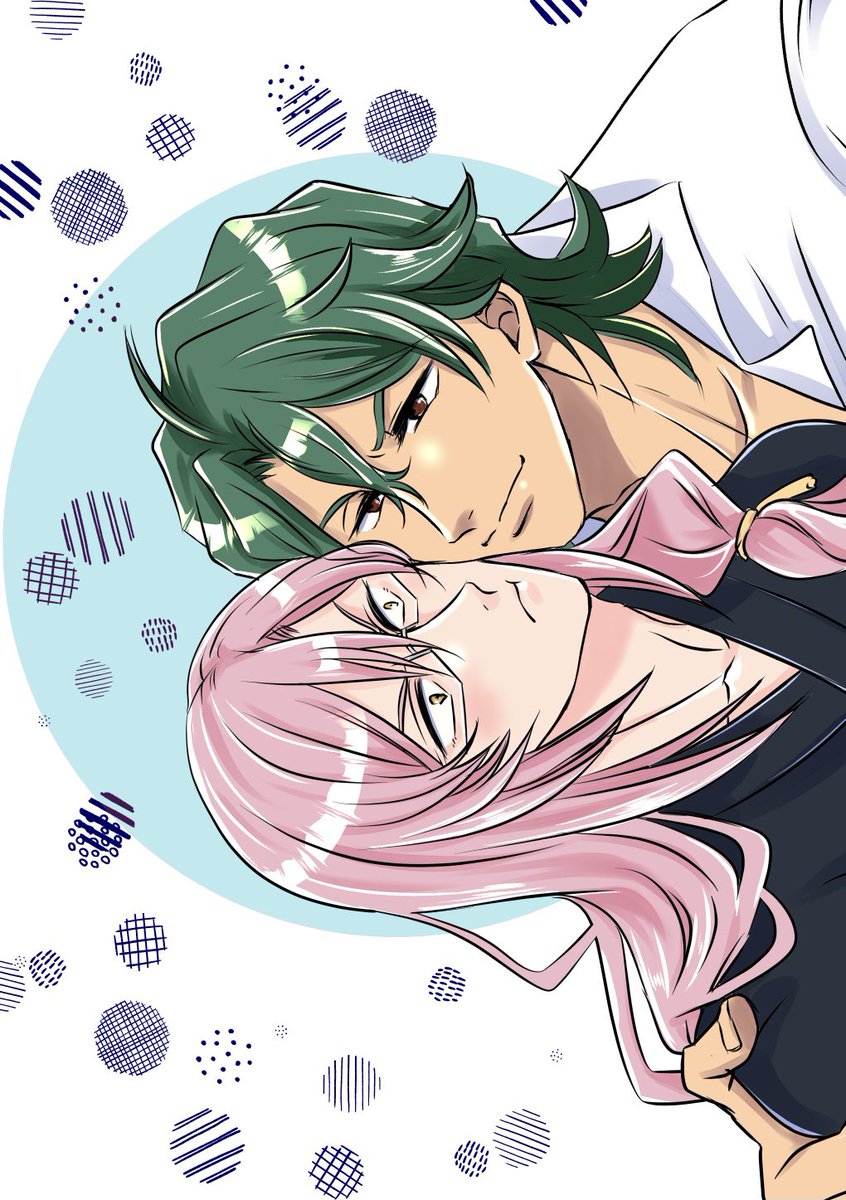 9/26🐯🌸webオンリーで海野さん(@__umix)よりエアスケブのリクエスト 「薫くんと虎次郎が頬くっつけあってるばかっぷるみたいなイラスト」です!お待たせしました🙇♀️ #そんなジョーチェリ