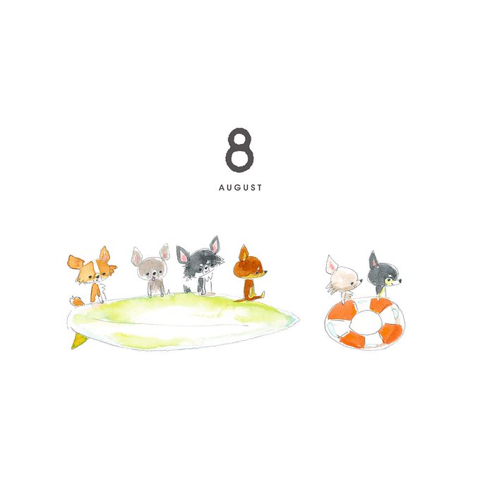 I love you連発する 渚のチワワボーイ♫ あ〜夏休み de 8月スタートw( ˊ̱˂˃ˋ̱ ) #イラスト #デザイン #カレンダー #チワワ #チワワのメイちゃん #たかねのイラストデザイン #8月 #チワワナカレンダー #あー夏休み