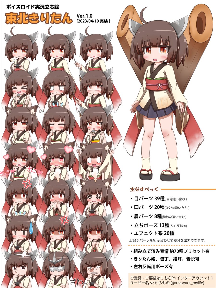 ボイスロイド実況用立ち絵 東北きりたん ver.1.0 完成 PSDファイルDLと留意点は以下より ux.getuploader.com/takaramono_tac… 追加したい表情・服・ポーズもあるので、2ヶ月に一度程度はアップデート予定です ご意見・ご要望があればご連絡下さい #東北きりたん #たからもの置き場 #サラリーマンらくがき部