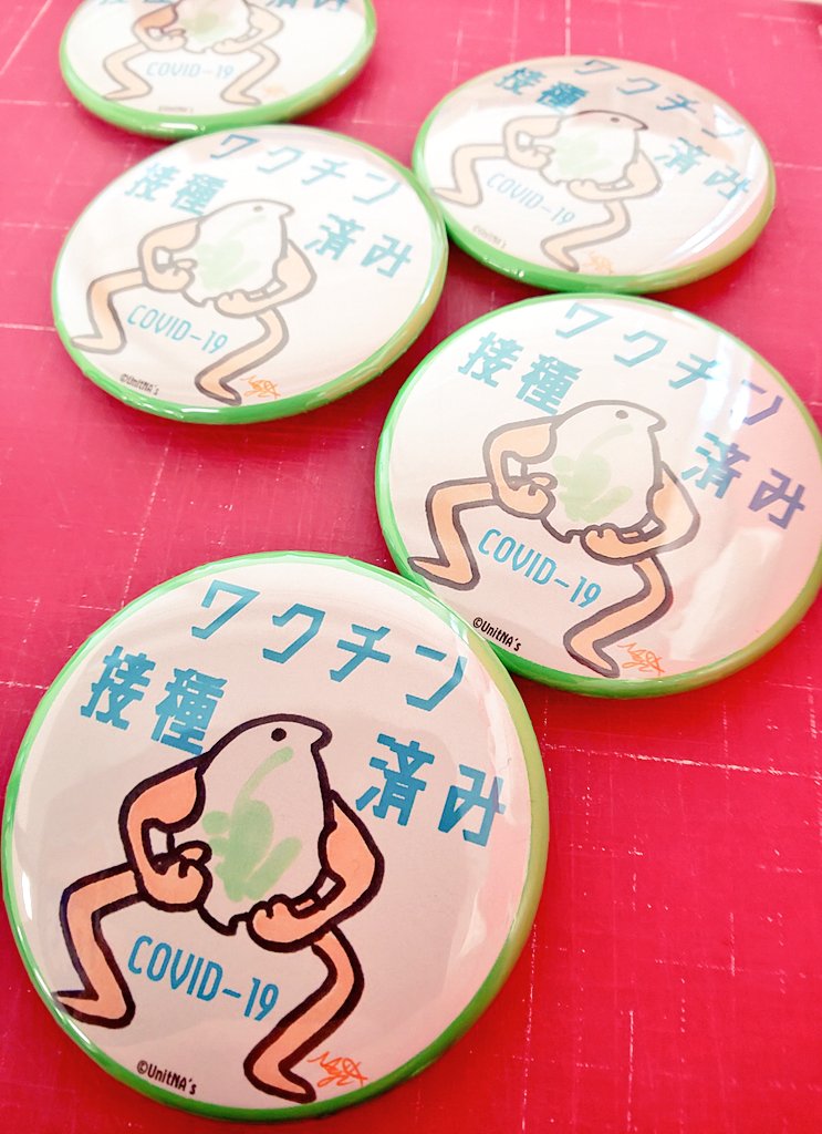 正直、前に作った足軽や鳥ちゃんのワクチン缶バッジがまだまだ在庫あるので、もうワクチンバッジは新作絶対作らん!😭.......って思ってるんですが しょうがないなァ!!デザフェスだからほんとに今回特別よ!!!あと、すまないことに数が少ないです!!!!! #たくましいミジンコ