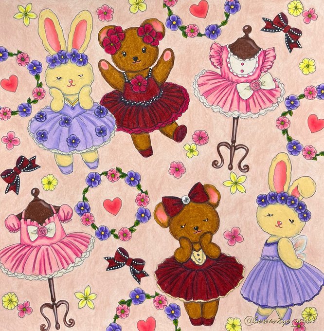 「夢色12か月の塗り絵POSTCARD BOOK」よりイースターのページが完成しました🥰❤️ほんわか幸せな感じで塗ることができました🥰❤️ #夢色12か月の塗り絵postcardbook #たけいみき #夢色12か月の塗り絵 #河出書房新社