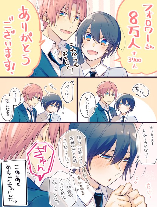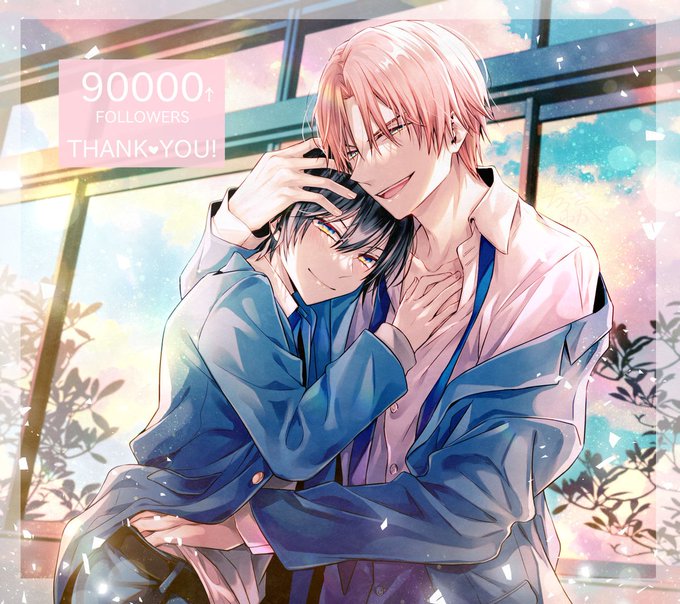 BL垢9万フォローありがとうございました!今後とも遥とカズハジをどうぞよろしくお願いします!! #創作BL #ただの友達じゃなくなる瞬間 ↓ラフと完成絵がもはや別モノ twitter.com/onikano_haruka…