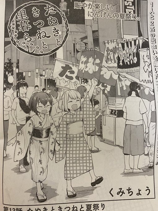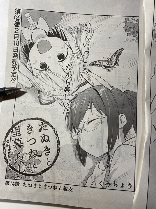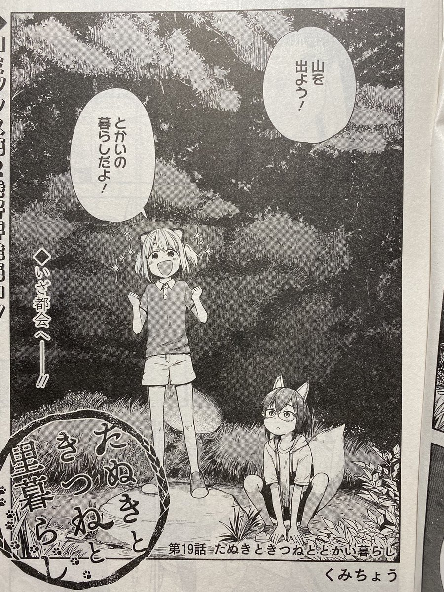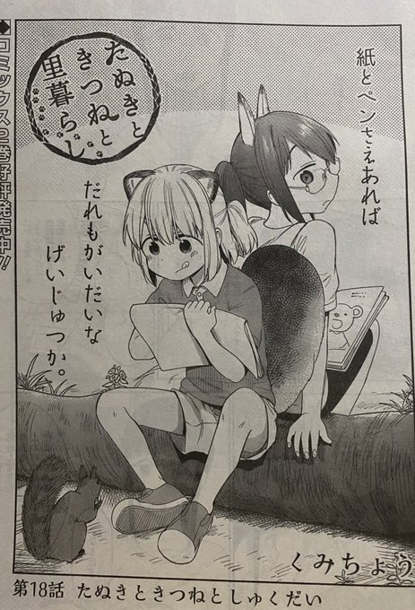 お知らせです、現在発売中のウルトラジャンプにたぬきときつねと里暮らし10話目が掲載しております!川にお出かけの回です。早いものでもう10話目です、是非是非チェックお願いしますー! #たぬきときつねと里暮らし