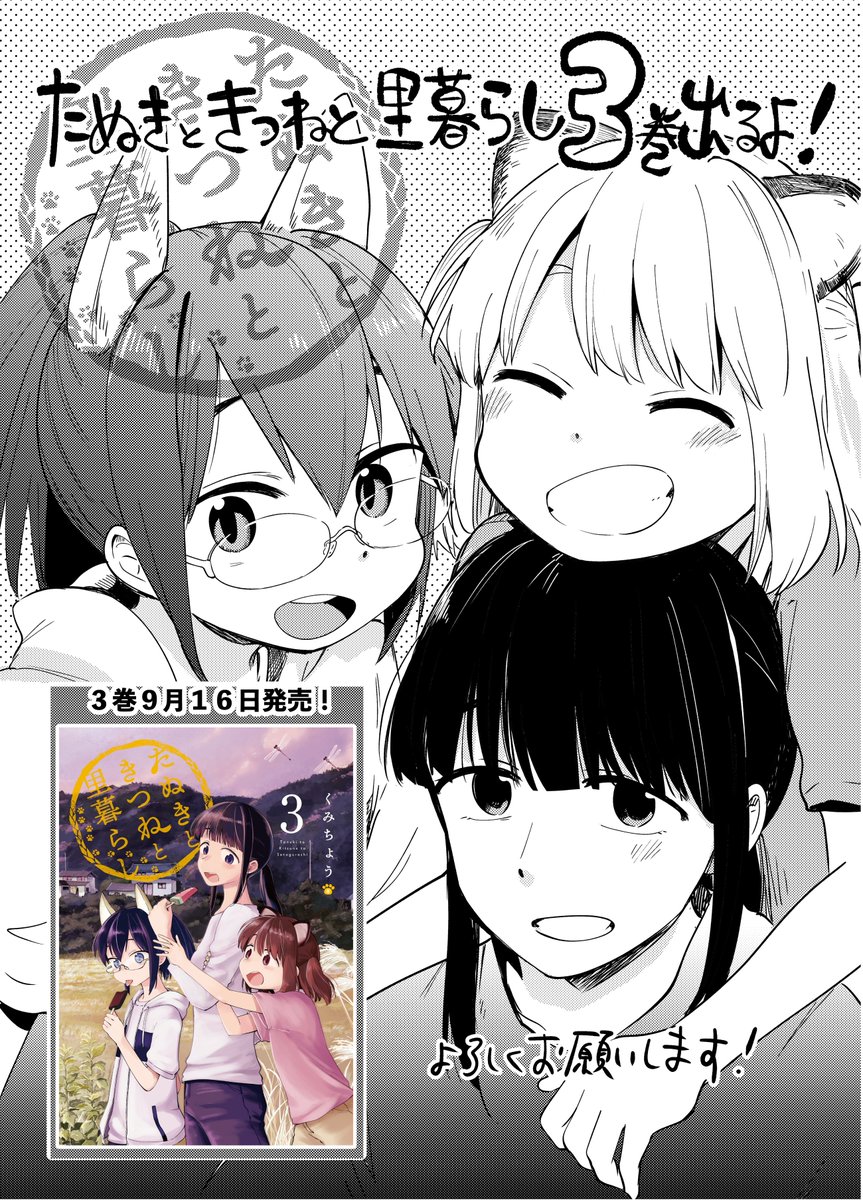 たぬきときつねと里暮らし最終3巻本日発売です!!こちらの表紙が目印です、是非是非よろしくお願い致します!!!🐾🐾 #たぬきときつねと里暮らし たぬきときつねと里暮らし 3 (ヤングジャンプコミックスDIGITAL) くみちょう amazon.co.jp/dp/B0B7RMPH9P/…