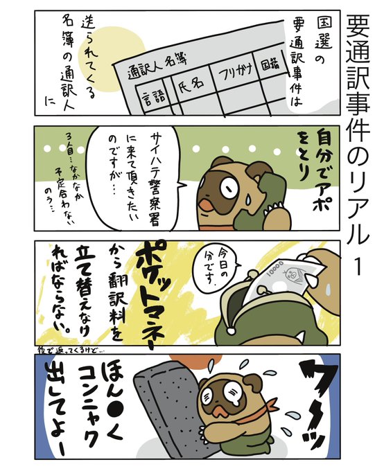 【要通訳事件のリアル1】 ドラえもおおおん!!ほんやくコンニャク出してよおおおお! (ポケトークとか使ってる方とかもいるんでしょうかね) #弁護士 #漫画が読めるハッシュタグ #たぬじろう #食っていけない弁護士