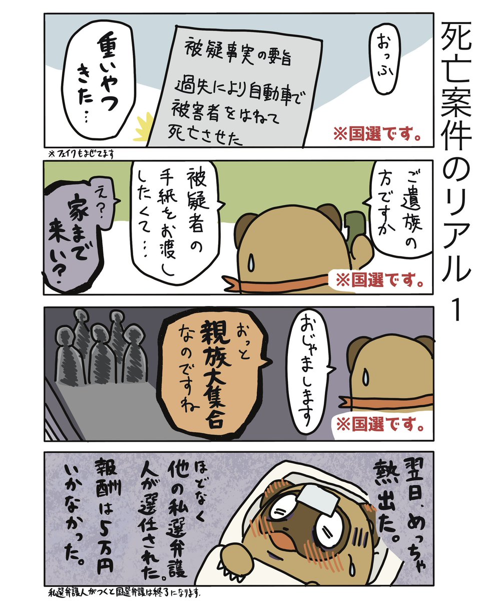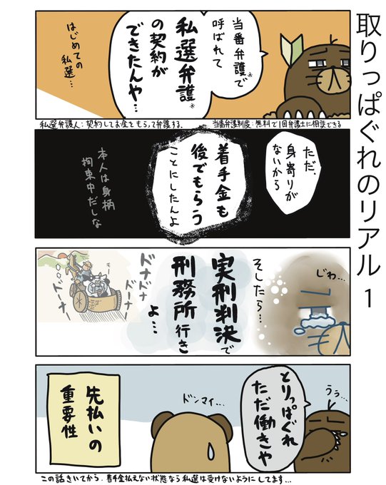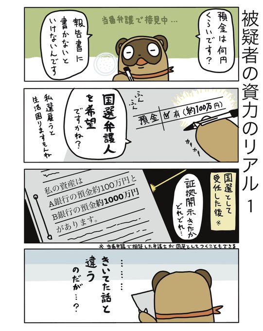 【取りっぱぐれのリアル1】 こういう事情がある場合もあって、なんだかんだ国選弁護人がつく場合も多いと思います(少なくとも僕は今は着手金いただける場合じゃないと私選ではつけないです) #弁護士 #漫画が読めるハッシュタグ #たぬじろう #食っていけない弁護士