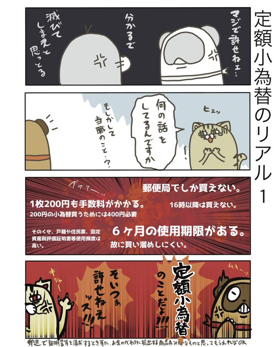 【定額小為替のリアル1】 本当に使いにくい…。他に方法ないんかと思う。 というか戸籍とかも一元化して、ネットでとれるようにしてほしい… #弁護士 #漫画が読めるハッシュタグ #たぬじろう #食っていけない弁護士